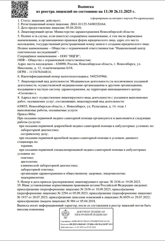Получите бесплатную консультацию и пройдите ДНК-тест, заполнив форму на нашем сайте или позвонив по телефону: +7 (383) 388-44-83 круглосуточно.